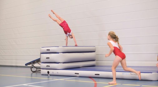 La piste gonflable de gymnastique acrobatique est une surface d'entraînement plane et rebondissante d'une grande polyvalence de manière à être adaptée à des disciplines sport très variées, qu'il s'agisse de gym, saut, danse freestyle ou arts martiaux.