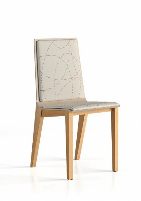 Cette chaise en bois garnie est conçue pour les restaurants et les cafés.