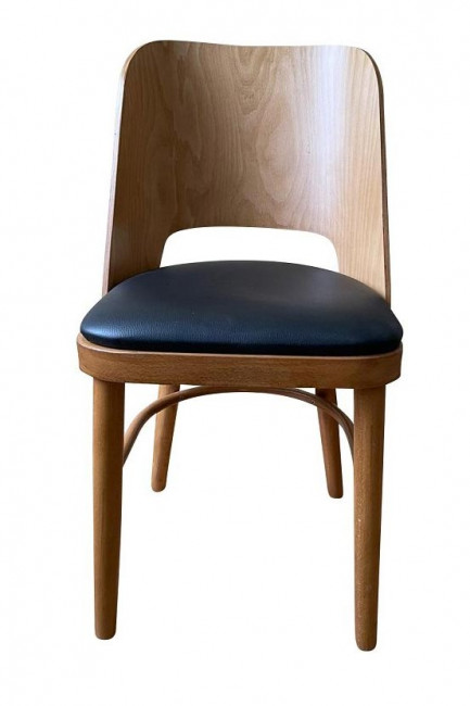 Chaise en bois de hêtre chêne miel , avec assise rembourrée, revêtue de vinyle noir