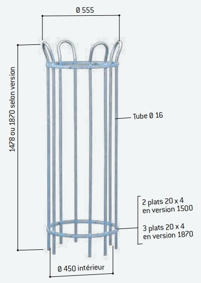 merci de chiffrer 135 corset d"arbres hauteur 1.50 diametre 450 en acier galvanisé