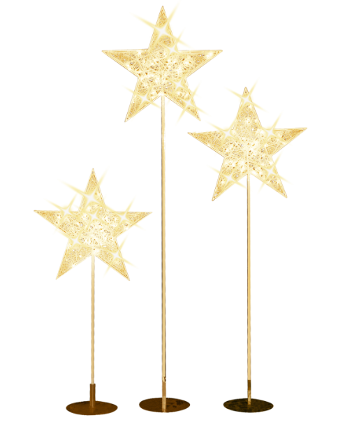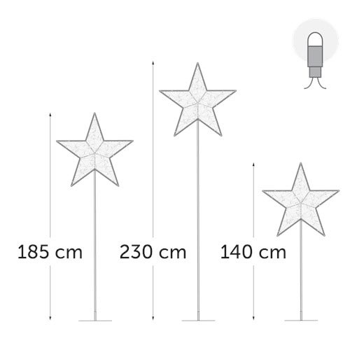 Notre étoile lumineuse à poser se décline en trois hauteurs majestueuses : 140, 185 et 230 cm, associées à une largeur de 70 cm.