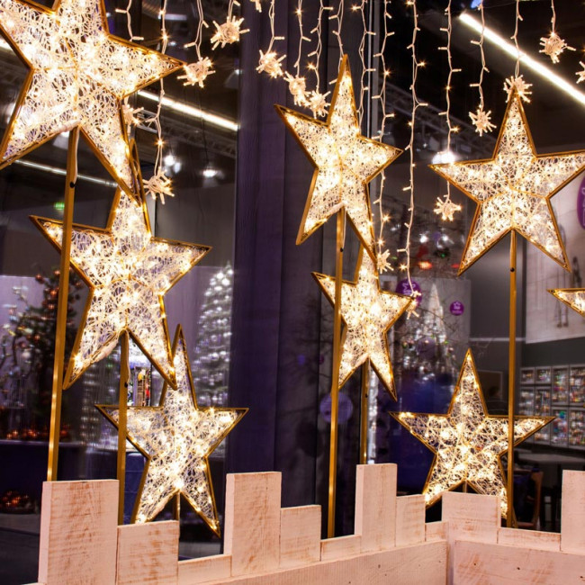 La structure dorée de notre étoile lumineuse apporte une touche d'élégance sophistiquée à vos décorations.