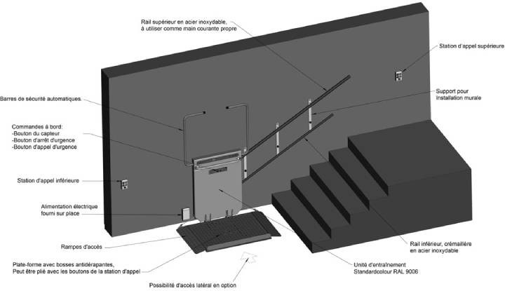 devis pour une Plateforme monte escalier droit pour fauteuil roulant environ 8 marches un plan des différents modèles.