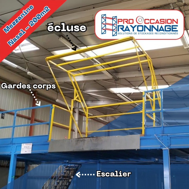Envie de repousser les limites de votre espace de travail sans vous lancer dans des travaux d'agrandissement ? La mezzanine industrielle Nasal de 200m² est la réponse idéale. Conçue pour s'intégrer dans vos locaux existants, elle vous permet d'ajouter une nouvelle dimension à votre environnement sans sacrifier le sol disponible. Que ce soit pour créer une zone de stockage additionnelle ou un espace de production, cette mezzanine allie robustesse et flexibilité. Capable de supporter des charges lourdes et équipée d'options personnalisables telles qu'une écluse, des garde-corps et un escalier, elle est prête à répondre à vos besoins d'aménagement sur mesure.