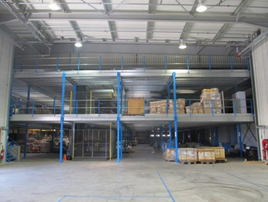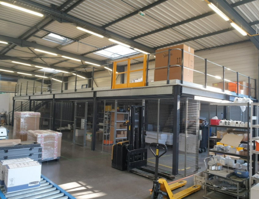 Sur la plateforme elle-même, vous avez la possibilité d'installer des rayonnages légers ou mi-lourds, des bureaux, de stocker des palettes, et même de mettre en place des cloisons amovibles pour créer des espaces de travail personnalisés.