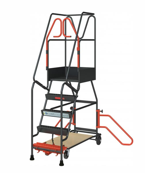 Notre escabeau mobile sécurisé intègre un système d'immobilisation automatique unique sur le marché.