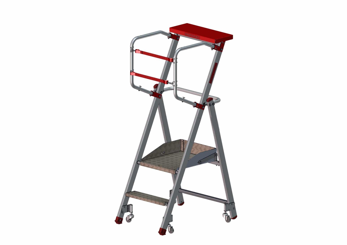 Il est doté d’une tablette porte outils, qui supporte un poids pouvant aller jusqu'à 15 Kg, sur laquelle le personnel peut poser des colis et travailler en toute sécurité.