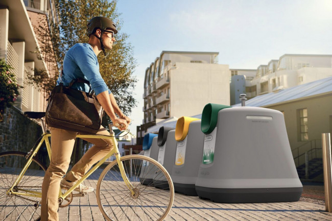 Conteneur CITY BIN en Polyéthylène , Design Original Offrant la plus faible hauteur du marché ( H 1.4M ) Disponible en 2, 3 et 4 M3 Réduit au maximum l’encombrement sur les trottoirs tout en offrant à chaque îlot la capacité de stockage nécessaire.