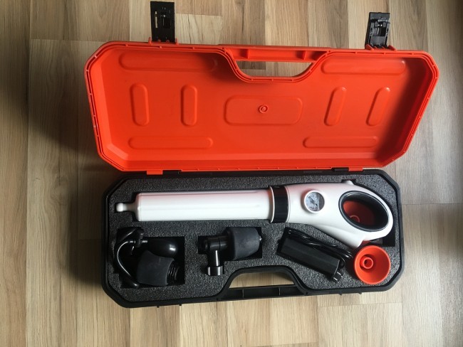 3. Le déboucheur est équipé plusieurs embouts pour s’adapter aux différentes canalisations, un chargeur de 230 V et une pompe électropneumatique.