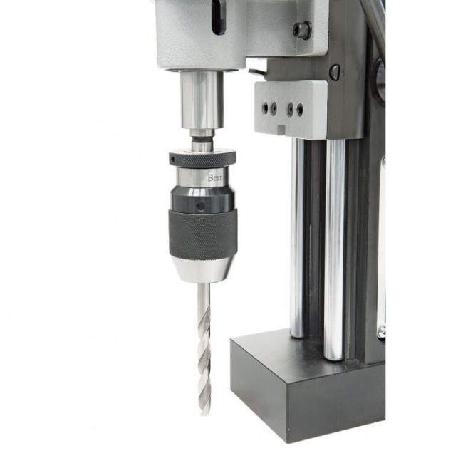La machine est livrée en standard avec un cône CM 2 comme porte-outils, ce qui signifie qu'elle est compatible avec une variété d'accessoires tels que forêts hélicoïdaux, forêts d'alésage, alésoirs, mandrins d'alésage, scies rotatifs à lames amovibles, et bien plus encore.