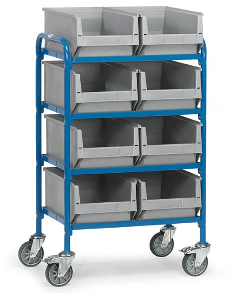 Servante d'atelier pour 4 ou 8 bacs - 4 plateaux - Charge 250 kg