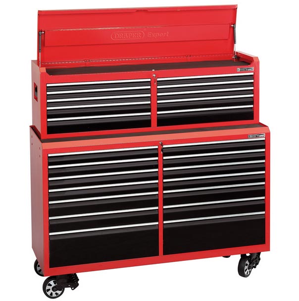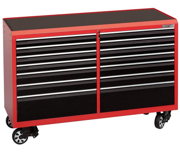 Il s'agit d'un combiné constitué d'une servante d'atelier à 14 tiroirs et un coffre à outils de 10 tiroirs.