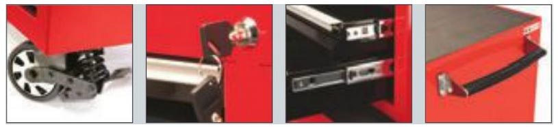 - Tous les tiroirs sont équipés de garnitures en mousse d'EVA de 3 mm et de roulements à billes assurant un fonctionnement plus lisse et une durée de vie plus longue.