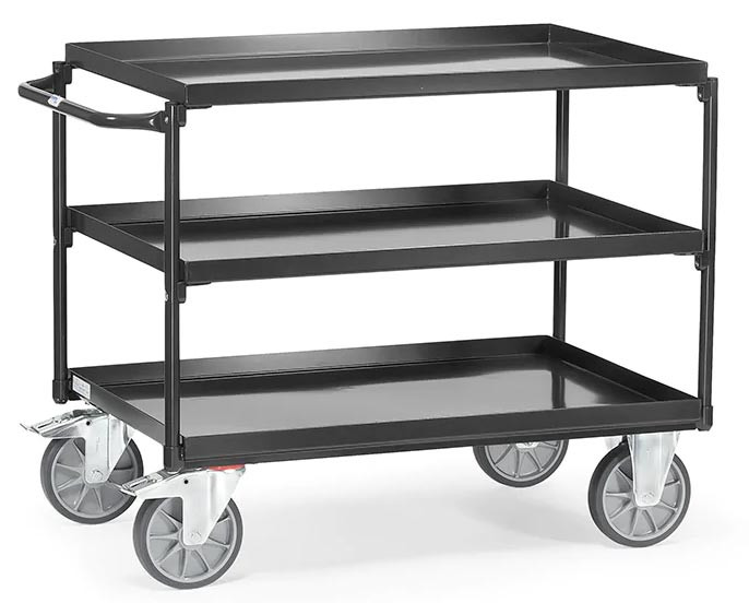 Servante d'atelier à 3 plateaux étanches en tôle d'acier