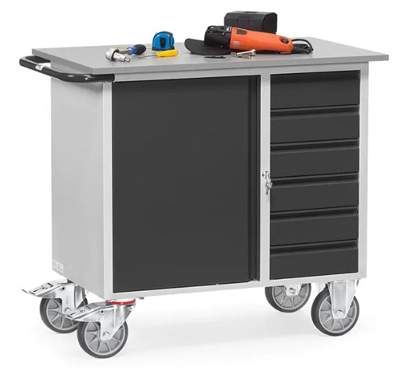 Cette servante d'atelier sans rebord est un conçue pour ranger ou déplacer vos différents outils de travail en atelier.
