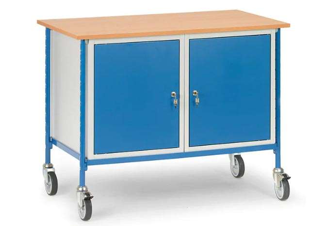 Cette table roulante avec 2 placards à serrure est un outil de manutention conçu pour les professionnels.