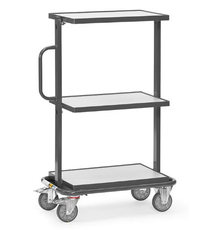 Cette servante ESD est conçue pour faciliter le déplacement et le stockage de bacs plastiques.