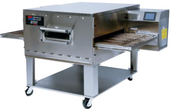 Four à convoyeur (norme CE) disposant d'un clavier sensitif, cellule infrarouge pour la détection des pizzas et balayage d'air chaud par turbine.