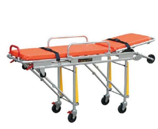 2 poignées ergonomiques de chaque côté permettent de plier et d'insérer facilement le brancard dans l'ambulance.