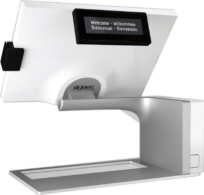 - Fin et plat, à dalle tactile résistive (ELO Touch) ou capacitive projetée multi-touch, inclinable à l’horizontale (90°).
