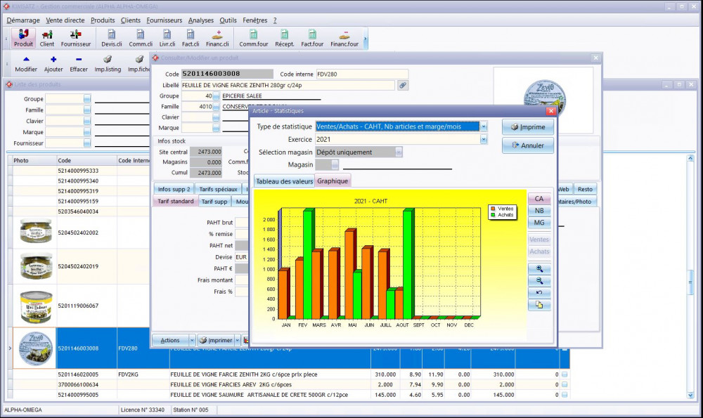 - Gestion des produits (création automatique de code, fiche complète)