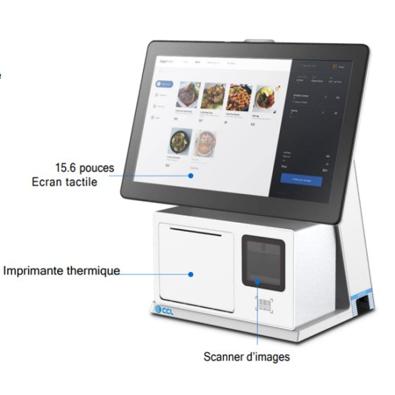 - 1 x TPV CCL-S1 COMBOBOX, TPV tout-en-un, CCL-S1, CPU J6412 (Elkhart-Lake), MAIN DISPLAY 15.6’’ 16/9ᵉ, Tactile Capacitive Intégrés, résolution 1920*1080 ; 1 x DDR3L 4 Go SO-DIMM, 1 x SSD 128 Go, Interface : 1 x LAN, 4 x USB, 2 x RS232, 1 x Sortie Tiroir, 2 x Sortie Audio 5w,