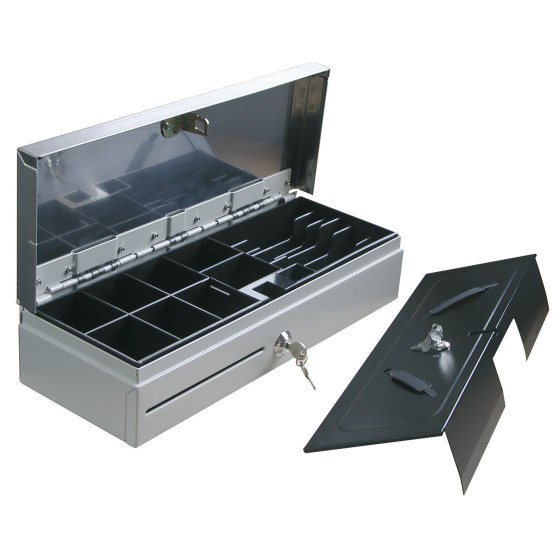 Le tiroir-caisse vous permet de gérer vos transactions en toute sécurité. Il dispose de compartiments modulables pour les billets et les pièces, et d'une fente avant pour les chèques et les tickets. Il est alimenté en 12/24V volts pour s'adapter à différentes configurations.