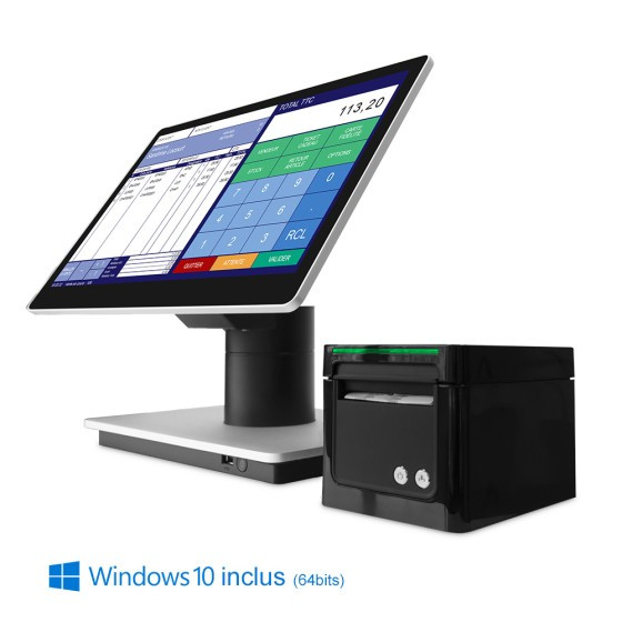 Il comprend un terminal tactile, une imprimante thermique et un tiroir-caisse, l'ensemble est conçu pour vous offrir une performance, une efficacité et une simplicité inégalées.