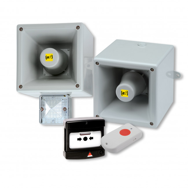 La forte puissance sonore (réglable) atteint 126 dB à 1 m ce qui offre une audibilité sur plusieurs centaines de mètres et dans les environnements bruyants