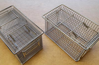 02/04/2021besoin de 2 paniers rectangulaires inox 316 avec couvercle, dimensions approchantes 422 X 274 h55 et 2 paniers inox rectangulaires dimensions 272X210 H55. Le tout grillagé sur du fil tissé inox diamètre de fil 1.5 maille de 6.