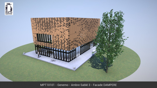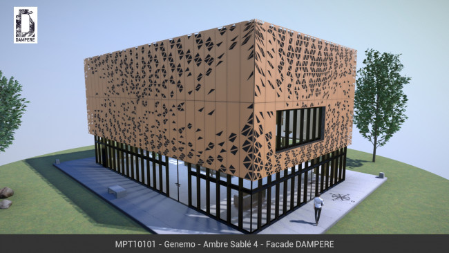 La façade en découpe laser GENEMO s’implante mieux dans un projet de grande taille pour donner plus de liberté à l’expression de la vague triangulaire. En passant devant des fenêtres, le motif devient plus transparent en rapprochant les découpes pour laisser passer beaucoup de lumière. Pour obtenir un bel effet, nous adaptons la vague à votre bâtiment, le rendu esthétique s’obtient avec une harmonie.
