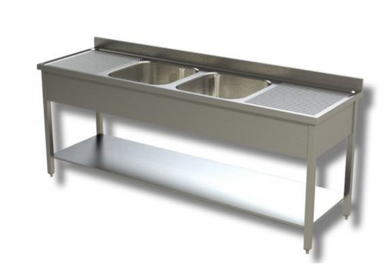 Modèle 2 bacs avec étagère basse : L 2400 x P 700 x H 850/900 mm