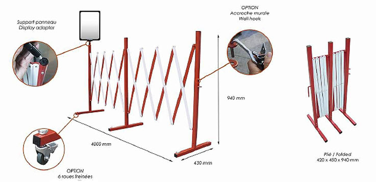 - Barrière extensible roulante et pliable