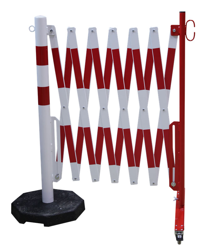 Cette barrière extensible avec poteau permet de délimiter temporairement une zone interdite d'accès.