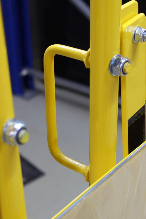 Matière : acier galvanisé et thermolaquée Largeur : 2x2000 ou 2x8000 mm Coloris : jaune-noir ou rouge-blanc Roues avec roulements à billes