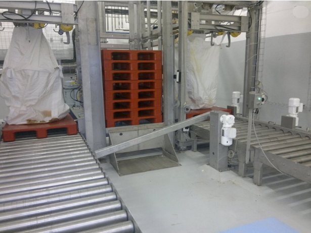 1 DEPILEUR de palette 1200 x 800 capacite environ 15 palette déchargement sur un convoyeur à rouleaux lx larg 900 mm H 350mm/sol avance et chargement palette petit coté devant 1EMPILEUR de palette 1200 x 800 capacite environ 15 palette Arrivée palette par un convoyeur Bi-chaîne x larg 900 mm H 250mm/sol avance et chargement palette petit coté devant (800mm) déchargement par gerbeur sur grand coté de la palette (1200 mm)