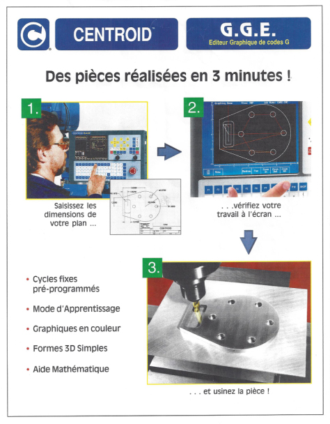 Dotée d’une fraiseuse CNC banc fixe avec CNC CENTROID M400 en 3 ou 4 axes, cette machine propose une programmation conversationnelle intuitive.