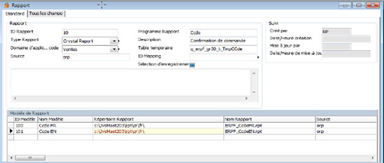 ERP Foundation fournit une interface visant à simplifier l’utilisation des rapports Crystal Report. Un paramétrage par utilisateur ou par groupe d’utilisateurs est disponible de façon à définir une préférence d’utilisation, tant sur le plan opérationnel (Imprimante par défaut ou encore aperçu avant impression) que sur le plan des traitements (filtrage des données) d’un modèle de rapport.
