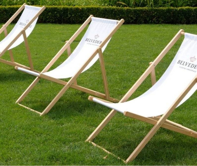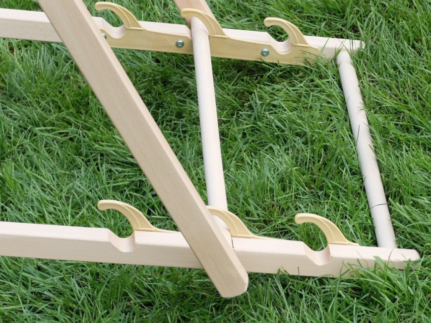 Structure bois de hêtre massif, naturel Dimensions : L.125 x l.54 x ep pliée 3,2 cm Toile 100% polyester 260gr/m² Toile fournie en coloris beige écru Charge maxi admissible 105 kg