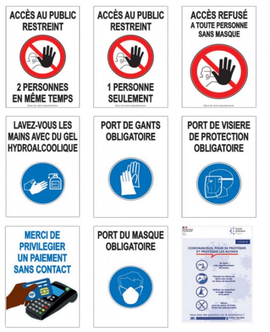 Pancartes rappelant les gestes barrières en prévention au COVID 19.