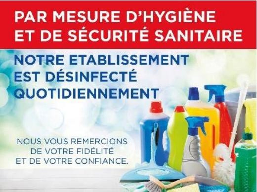 Notre établissement est désinfecté quotidiennement