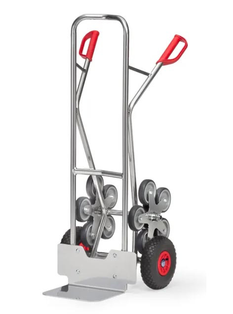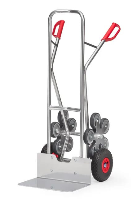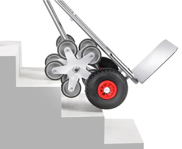 Diable escalier en aluminium - Charge 200 kg - 2 roues gonflables et 2 x 5 roues