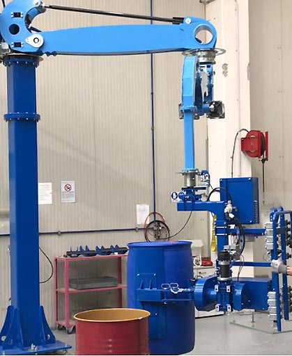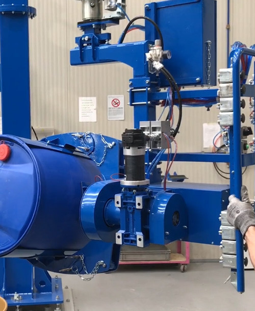 Elle est idéale pour alimenter les trémies des usines de production, mélanger les contenus des fûts et verser des quantités contrôlées de liquides ou de produits granulaires.