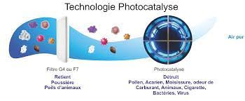 La photocatalyse capte, décompose et transforme les polluants en un air sain, purifié et bénéfique pour la santé en éliminant 99,99% des COV et polluants présents dans l'air.