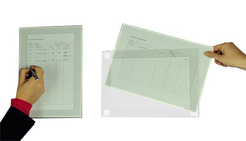 - PVC cristal rigide et ouverture sur l'avant pour annotations.