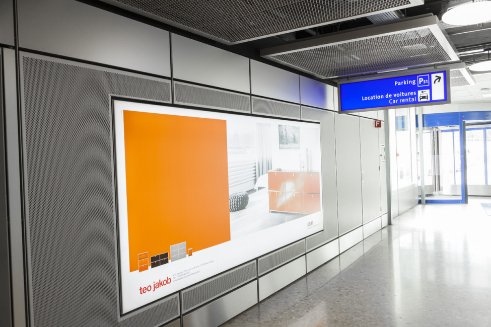 Il est équipé d'un caisson publicitaire pour une application à l’intérieur tout comme à l'extérieur.