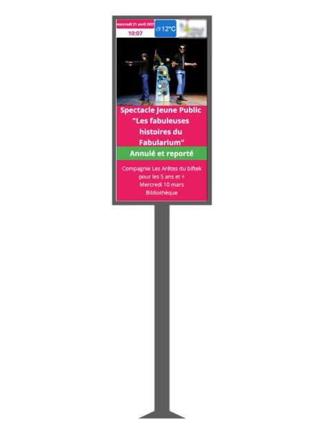 Pour notre association de musculation j"aurais besoin d"un panneau d"affichage led mural ou sur pied pour intérieur pour mettre des infos concernant plusieurs notes également avec l’heure si cela est possible idéalement de dimension 80x40cm ou 1mx50cm.Besoin immédiat Cordialement