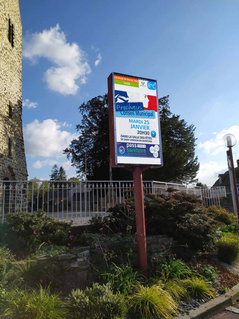 Ces panneaux d'affichage permettent d'alerter, de diffuser de l'information légale, touristique et événementielle. Les diffusions peuvent être programmée ou en temps réel. Le panneau LED est une solution peu énergivore qui entre dans une démarche éco responsable. Il dispose d'une luminosité adaptative pour une expérience utilisateur optimale.