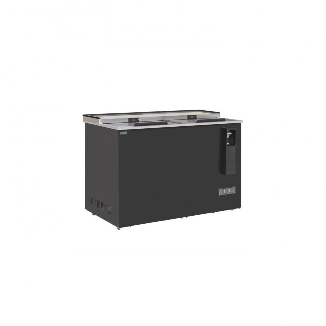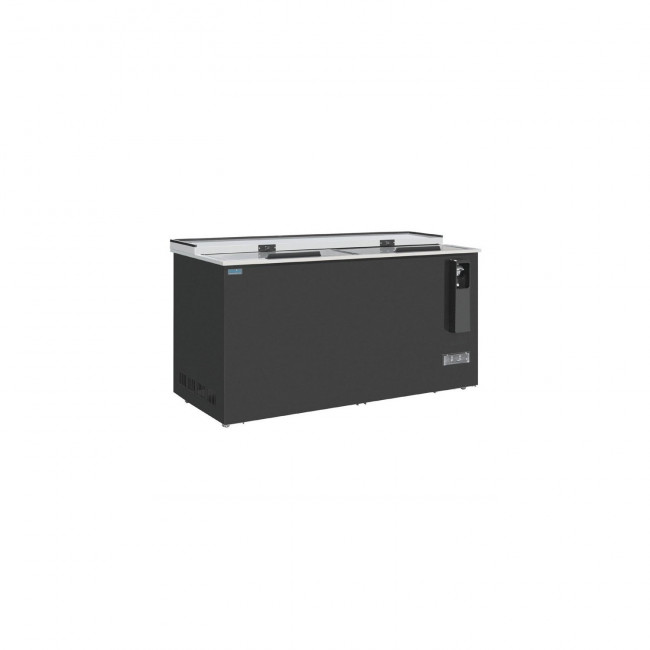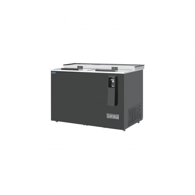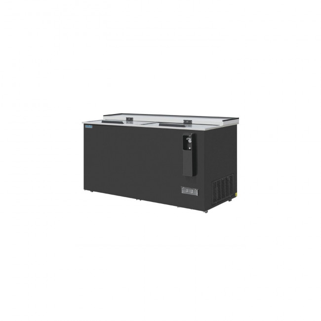 Ce refroidisseur à bouteilles à chargement supérieur permet de stocker et refroidir des bouteilles et canettes.