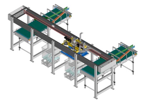 C'est une ligne de conditionnement pratique pour transférer des lots de produits lors de la palettisation ou la dépalettisation.